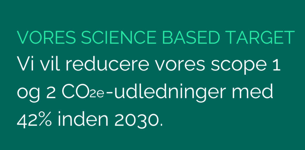 Som virksomhed har vi nu forpligtet os til at reducere vores CO2e-udledninger i scope 1 og 2 med 42% mellem 2023 og 2030 samt at måle og reducere vores scope 3.